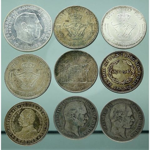 Samling af sølvmønter med forskellige motiver, herunder indianerhoved og bøffel. Mønterne ligger i runde kapsler. Egnet til mønt- eller metalsamling og som udstillingsobjekter. Antal, årstal, oprindelse og sølvindhold fremgår ikke tydeligt af billederne og bør derfor kontrolleres ved interesse.1oz pr stk