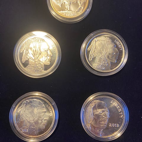 Sølvmønter samling med indianer- og bøffelmotiv
