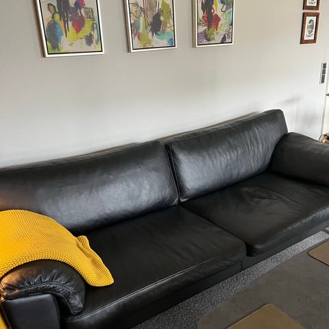 Velholdte og velplejede røde lædersofaer. Sælges kun samlet.