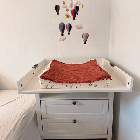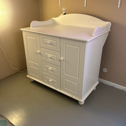 Egnet til opbevaring af babytøj, bleer og tilbehør samt som puslestation på børneværelset.