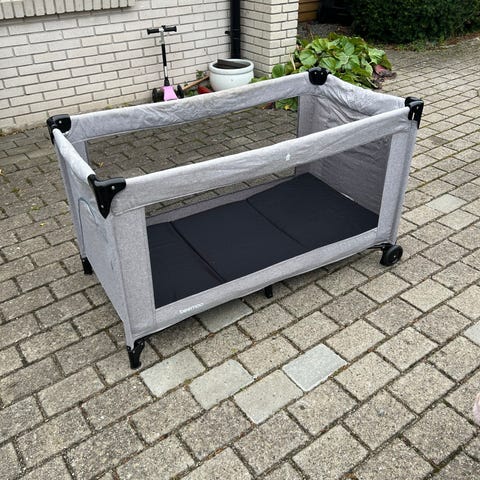 Fin og god stand Incl . Bund og madras. Har været brugt som bedsteforældre passeseng. Der medfølger ekstra madras 10 cm (den hvide) til brug for en uge eller mere.