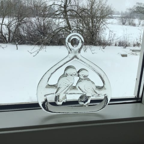 Håndlavet i Sverige i 1970'erne - denne minimalistiske klokkeskulptur fungerer både som en flot vinduesdekoration og en festlig solfanger.