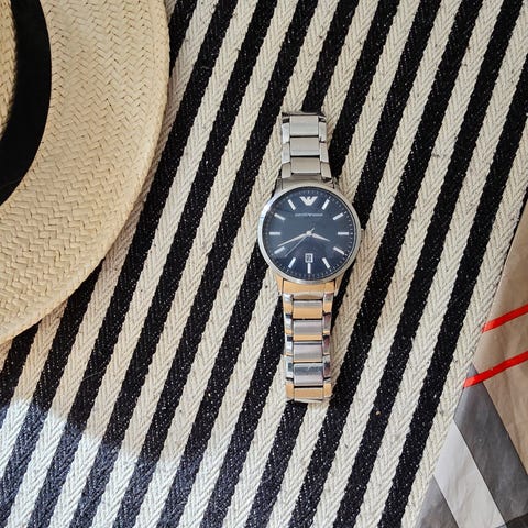 Emporio Armani herreur, den har små ridser på glasset , batteri skal udskiftes . Nye koster cirka kr. 2950. Kom med et fornuftigt bud