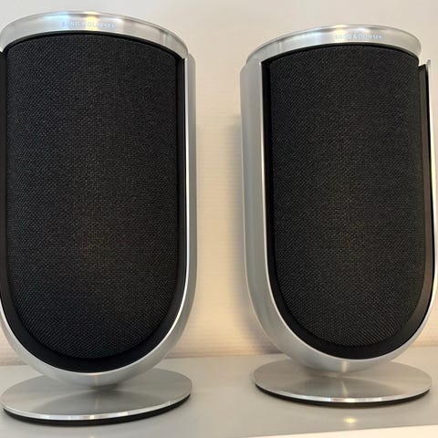Bang & Olufsen Beolab 8 silver med ege fronter. På vægbeslag. Står som nye. Fra februar 2024 så stadig med 1 års garanti. Original emballage haves og kvittering medfølger naturligvis. Sælges kun i ren handel. Ingen bytte.