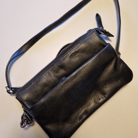 Lædertaske med lilla kanter