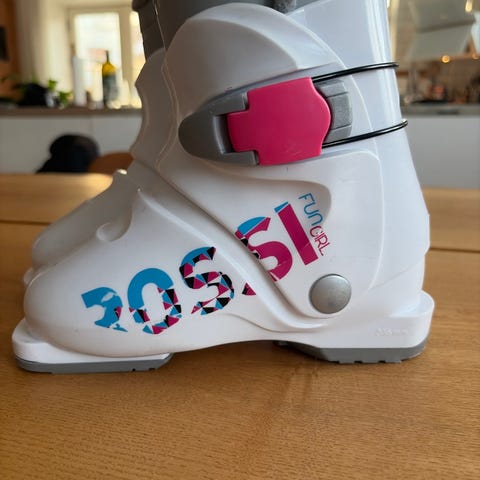 Rossignol skistøvler i hvid. Modellen har flere justerbare spænder foran samt velcrorem øverst for bedre tilpasning om underbenet. Inderskoen er polstret for komfort og varme. Egnet til alpint skiløb. Støvlerne har gennemsigtig yderskal med hvide detaljer og spænder. De er brugt men i god stand. Størrelse 37. Vil gerne af med dem så kom gerne med et bud. Kan afhentes på Østerbro.