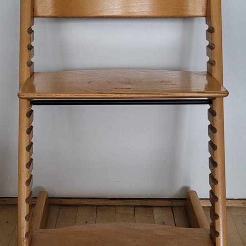 Hauck højstol i sort træ. Højstolen har justerbare sæde- og fodplader, som kan tilpasses barnets højde. Egnet til brug ved spisebord eller som siddeplads til barnet i hverdagen. Designet med en stabil konstruktion og trinvis regulering af pladerne for længere anvendelsesperiode.