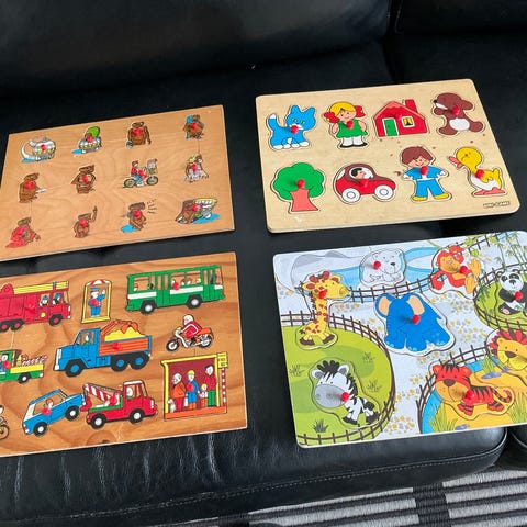 4 stk. træpuslespil til småbørn sælges samlet for 60 kr.