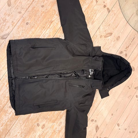 Picture Organic Clothing skijakke til herre i størrelse M. Jakken er hvid med sorte lynlåse og logo-detaljer på bryst og ærme. Modellen har hætte, høj krave og flere lynlåslommer på fronten til opbevaring af småting. Justerbare manchetter ved ærmerne giver mulighed for tilpasning omkring håndleddene. Velegnet til skiløb og andre vinteraktiviteter, hvor der er behov for en funktionel og beskyttende yderjakke.