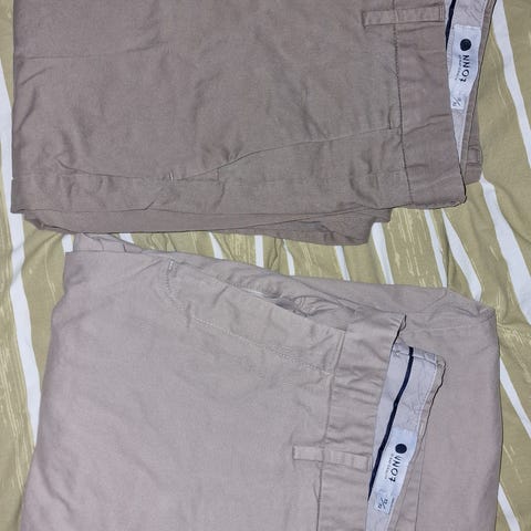 No Nationality - NN07 herrebukser i blå bomuld. Bukserne har taljevidde W33 benlængde 34 og passer en herrestørrelse M. Klassisk model med bæltestropper, baglomme og diskret logo-detalje bagpå. Velegnet til hverdagsbrug og mere pæne anledninger.