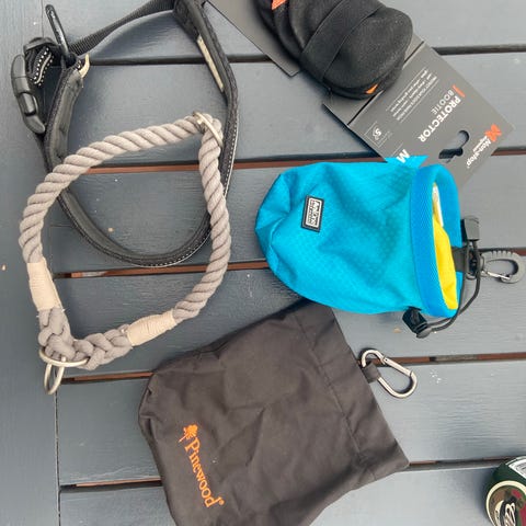 Diverse børster, hvalpehalsbånd og seler, m.v. til hunde.
