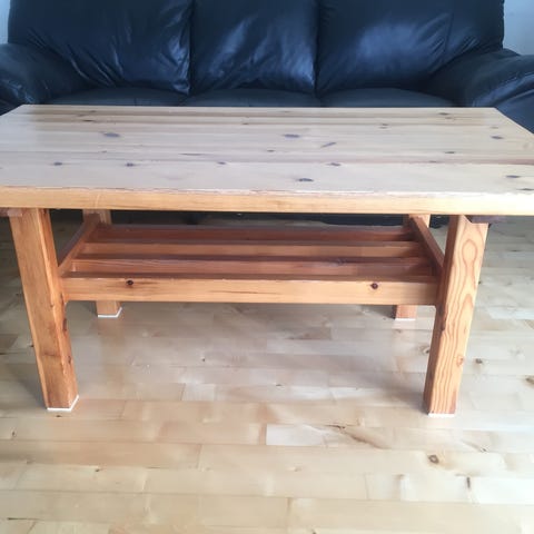 Superhyggeligt sofabord som har været sæbevandsbehandlet i mange år. De få patinapletter som er og uvægerligt kommer på bordet går af efter nogle omgange vask med varm sæbespånevand - det gælder også "hidsige" pletter som fx rødvinspletter!