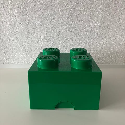 LEGO opbevaringskasser klodsformede plast blå gul grøn