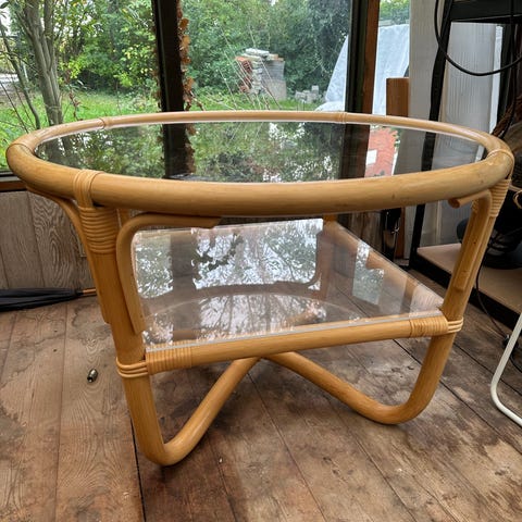Charmerende bambus møbler med ægte retro vibe. Perfekt til stue, udestue eller sommerhus, hvor man vil have lidt varm, vintage stemning.