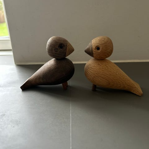 Kay Bojesen turtelduer/lovebirds træfigur i sæt med to fugle i naturfarvet træ.