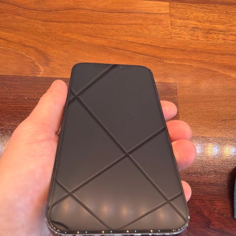 Aluminiumskant rundt på telefonen har nogle små ridser og skærm har nogle enkelte revner. Det er dog ikke noget der påvirker funktionaliteten.