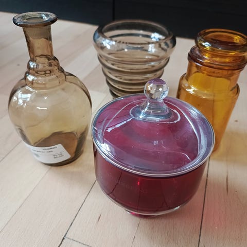 Sæt med dekorative glasbolsjer og én glas-slikkepind i forskellige former og størrelser. Elementerne er flerfarvede og udformet som klassiske bolsjer og slikstykker. Velegnet som pynt, samlerobjekter eller dekoration i skåle, på hylder eller i montre. Fremstillet i glas med varierende mønstre og farvekombinationer.
