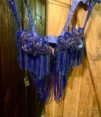 Anden kjole, Kostume til mavedans / bellydance, str. M, Blå, God men brugt, Mørk koboltblå vintage kostume til mavedans/bellydance - over 30 år gammelt - med perler en masse (der er tyngde i hoftestykket) med skørt og slør og lidt tilbehør.