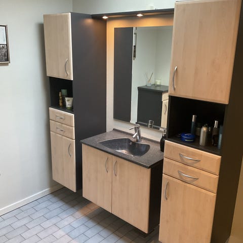 Flot og eksklusivt Multiform badeværelsesmøbel. Granit bordplade. God stand og bedste kvalitet. Blandingsbatteri medfølger.