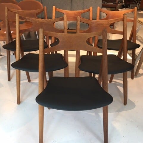 6 stk. Wegner CH29 spisebordsstole også kaldet savbukkestolen