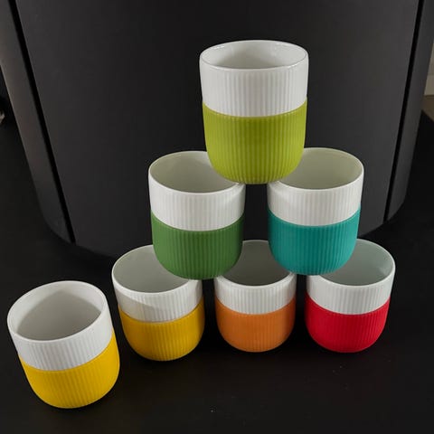Royal Copenhagen termokrus i porcelæn. Krusene har rillet struktur og er tofarvede i brun og hvid. Velegnet til varme drikke som kaffe, te eller kakao. Kan bruges både til daglig brug og som en del af en stel-samling fra Royal Copenhagen.