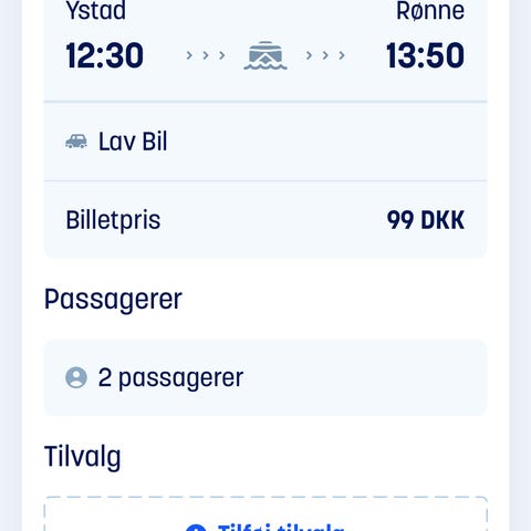 Molslinjen færgebillet Odden–Aarhus 11. februar 2026 for bil