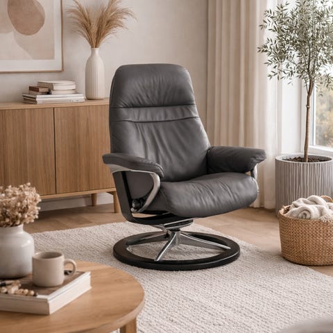Læderstol med ægte læder. Kendetegn med moderne tidsløse design