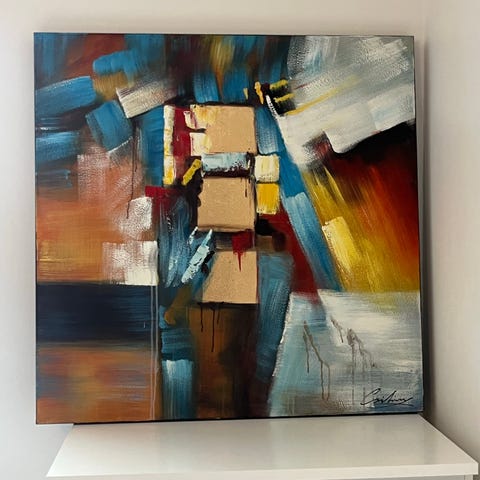 Købt hos Kalleriet i Vanløse, og måler 60 x 80 cm.