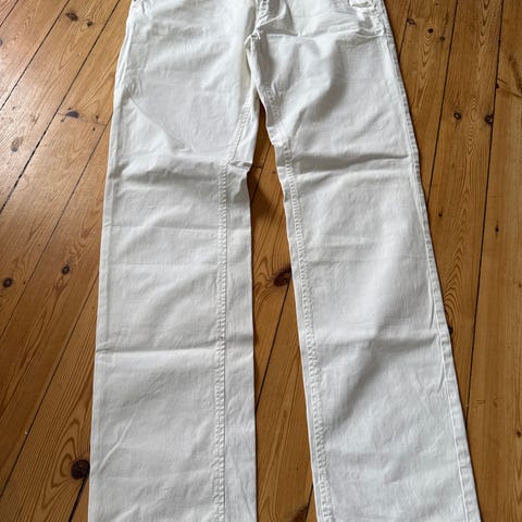 Hugo Boss herrebukser i grå bomuld. Bukserne har taljevidde W34 og passer ca. herrestørrelse M. Klassisk femlommers-model med bæltestropper og Boss-logo-patch bagpå. Materialet er bomuld, hvilket giver et blødt og behageligt stof. Velegnet til hverdagsbrug eller mere afslappede outfits.