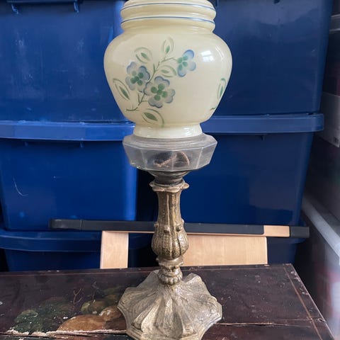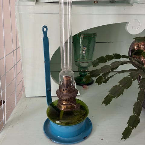 Vintage olielampe i grønligt glas grøn