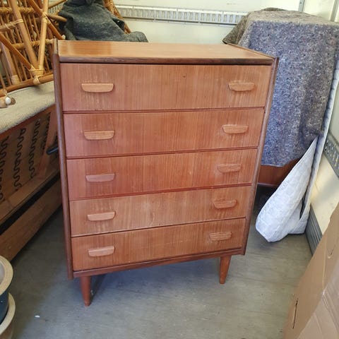 Teak kommode med 6 skuffer