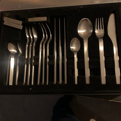 1 stk. kniv, 1 stk. gaffel, 1 stk. spiseske og 1 stk. teske - Blankt rustfrit stål
