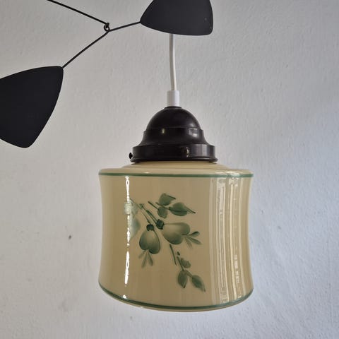 Denne smukke kugle lampe med bakelit ophæng laver det fineste lys.