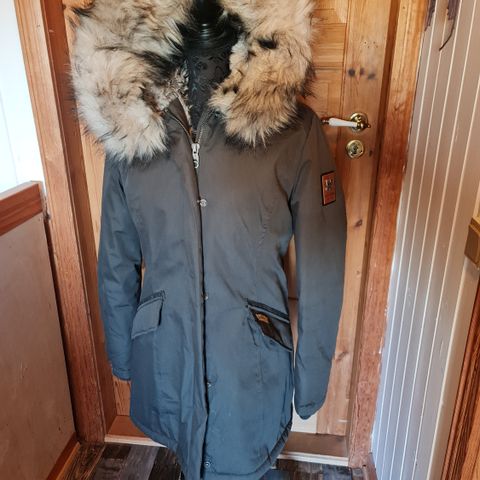 Flot mørkeblå frakke fra Numph. Trænger til en rens. Der er noget fnuller som helt sikkert kan fjernes