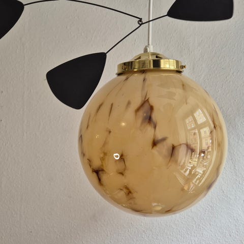 Marmoreret glas lampe med messing ophæng.