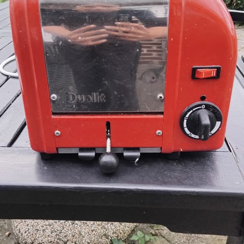 Ældre model med brugsspor. Få en billig dualit og brug den som den er, eller poler metallet med brasso og få den til at se ud som ny.