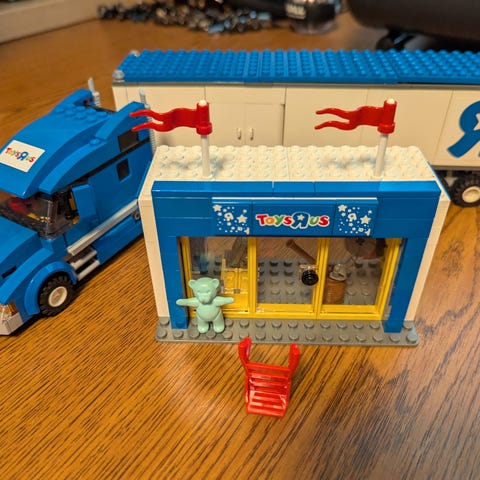 Sættet er ikke komplet. Flere klodser og klistermærker mangler eller er erstattet af alternativer.