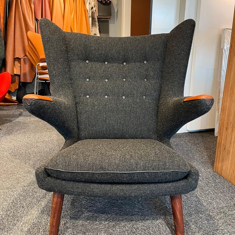 2 stk bamsestole i brunt læder. De står begge i pæn stand. Inspireret af især Hans j. Wegner og Svend Skipper. Pris er pr stk. Sælges både enkeltvis og samlet. # retro, stol, stole, lænestol.