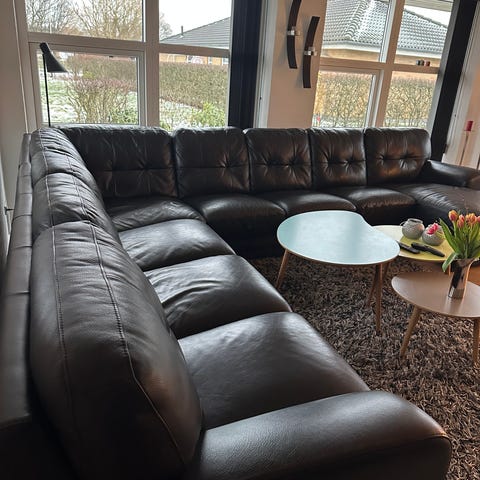 Sofaerne er ca. 12 år gamle, men fremstår i pæn og velholdt stand. Læderet er blødt, uden revner, og med almindelig, naturlig patina. Ingen lugt og fra røgfrit hjem.