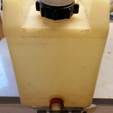 Dunk brugt til sprinklervæske. Har studs med flyde sug. Studsen er lidt brækket.