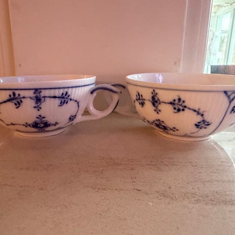 Royal Copenhagen Blå Kant. Bouillonkopper med underkopper og låg. Nr 3081