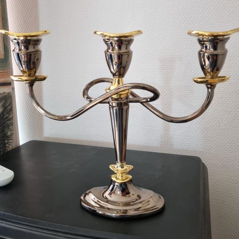 Fineste 4 armene lysestage i antik guld look. Tung og solid 😅💪🏼🕯️.