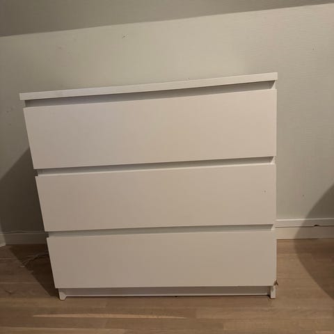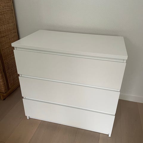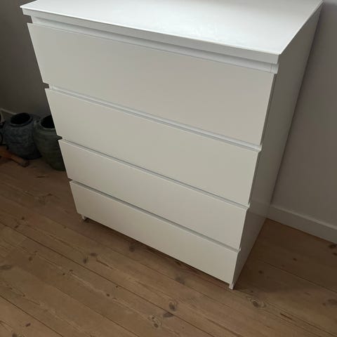 IKEA MALM kommode med 6 skuffer. Hvid. God stand. Skal hentes ned fra 2. sal. Skuffer kan tages ud.