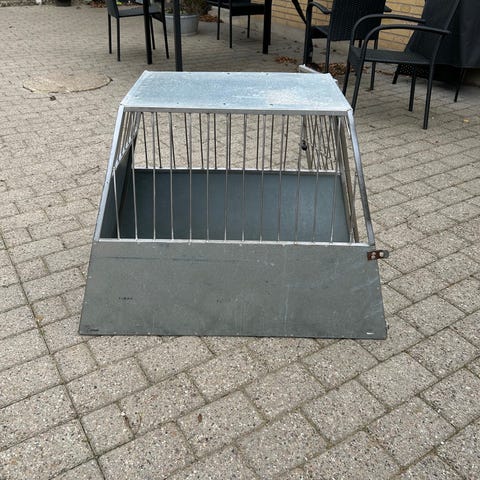 Hundebur i kombination af metal og træ. Buret har gitter i metal på sider og top samt faste plader i træ i bunden og på de nederste sider. Foran er der to låger med lukketøj, som giver nem adgang til buret. Egnet til transport eller som fast opholdsplads til hund i eksempelvis bil, garage eller udhus. Solid konstruktion med god ventilation gennem metalgitteret. mål: L=100cm B=90cm H=69cm