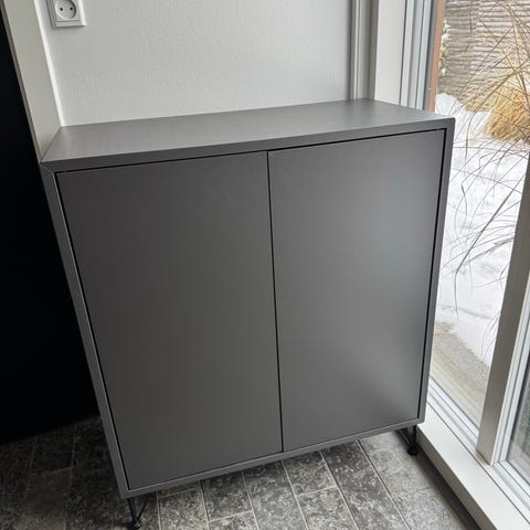 Grå Eket fra Ikea. Fungerer fint og kan evt. Bruges som sengebord, hænges op væg eller hvad man syntes den skal bruges til. Kan afhentes i Roskilde.
