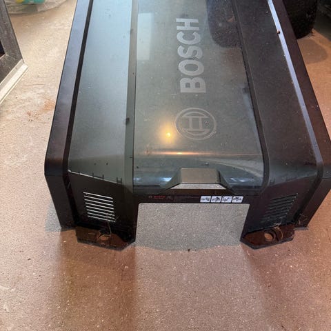 Helt ny, aldrig brugt garage til Bosch indigo plæneklipper. Passer til