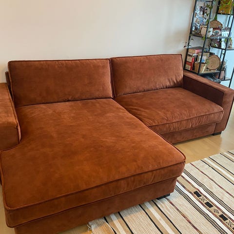 We sadly have to say goodbye to our amazing Couchpotato sofa, as we’re moving to a new place where it doesn’t fit. The sofa was purchased one year ago and is in excellent condition. The sofa material, Velour, it is super soft and it is the most comfortable sofa we have ever tried.