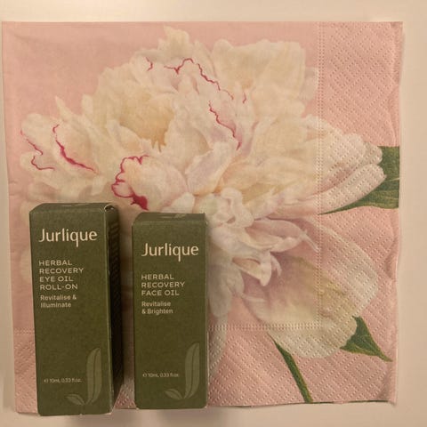 Jurlique Herbal Recovery Revitalise & Replenish Discovery Set hudplejesæt. Sættet indeholder flere produkter fra Herbal Recovery-serien i mindre størrelser, velegnet til afprøvning eller rejsebrug. Produkterne er beregnet til ansigtshudpleje og leveres samlet i en kosmetikpung. Ingredienser og yderligere oplysninger fremgår af emballagen.