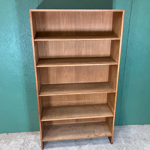 Super fin to-delt væghængt hylde i træ til bøger, service, krydderier eller lign. Det er formentligt en Hans J. Wegner hylde. Den har fået en smule skrammer - se billeder.