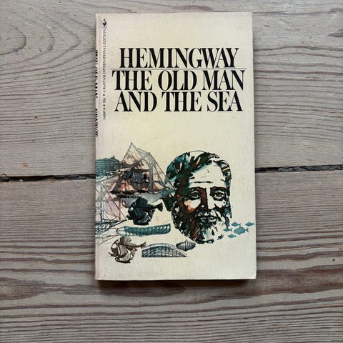 Ernest Hemingway "Den gamle mand og havet" bog. Dansk udgave af den klassiske roman.